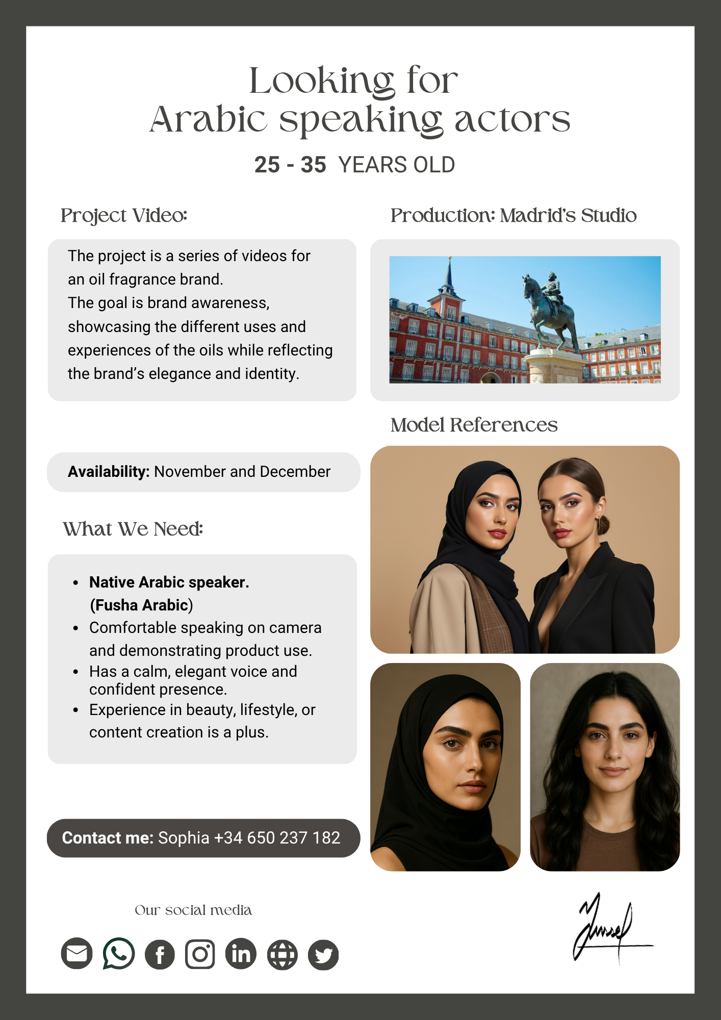 We are looking for actresses with Arabic features who are native Arabic speakers, between 25 and 35 years old.